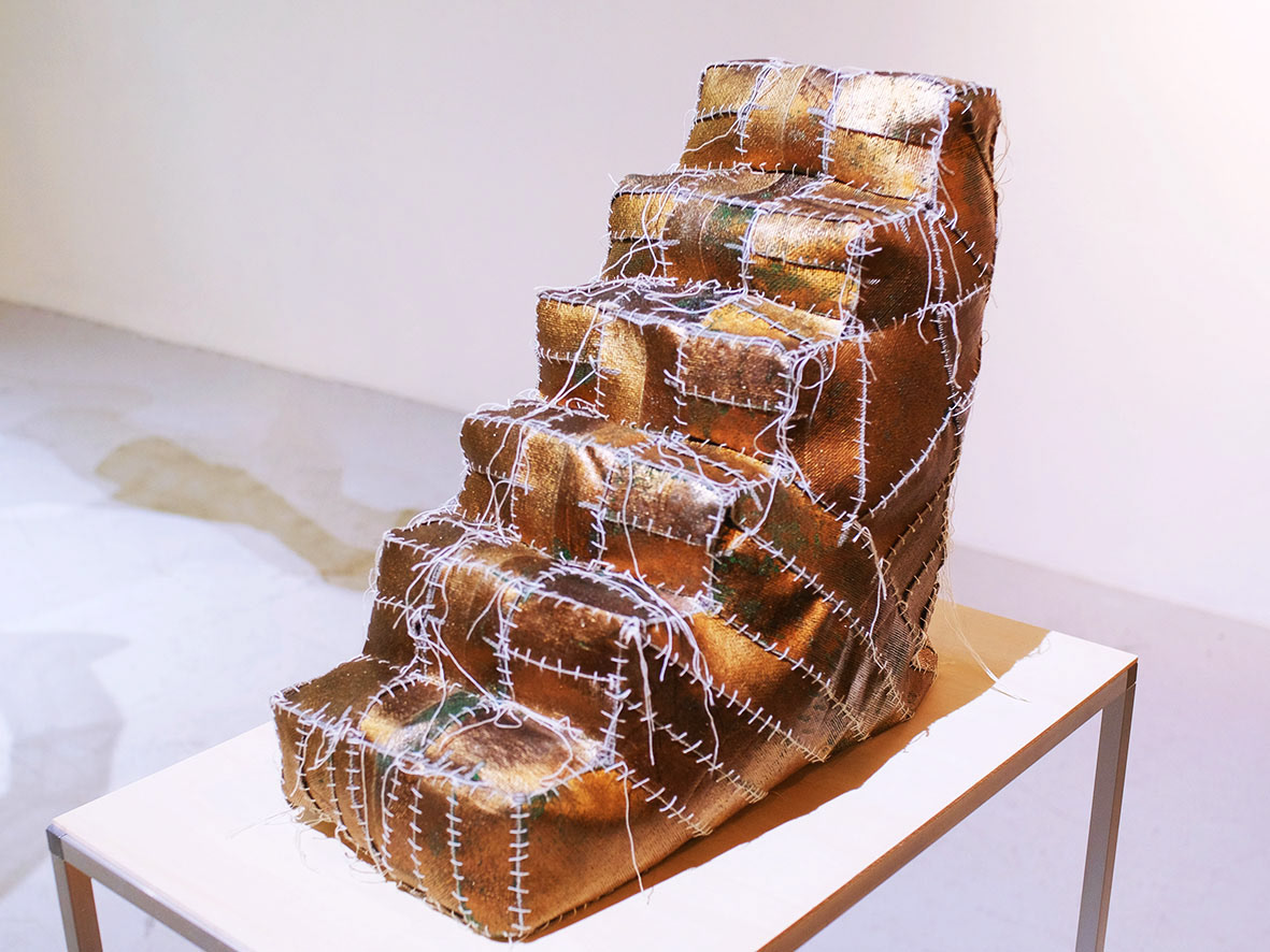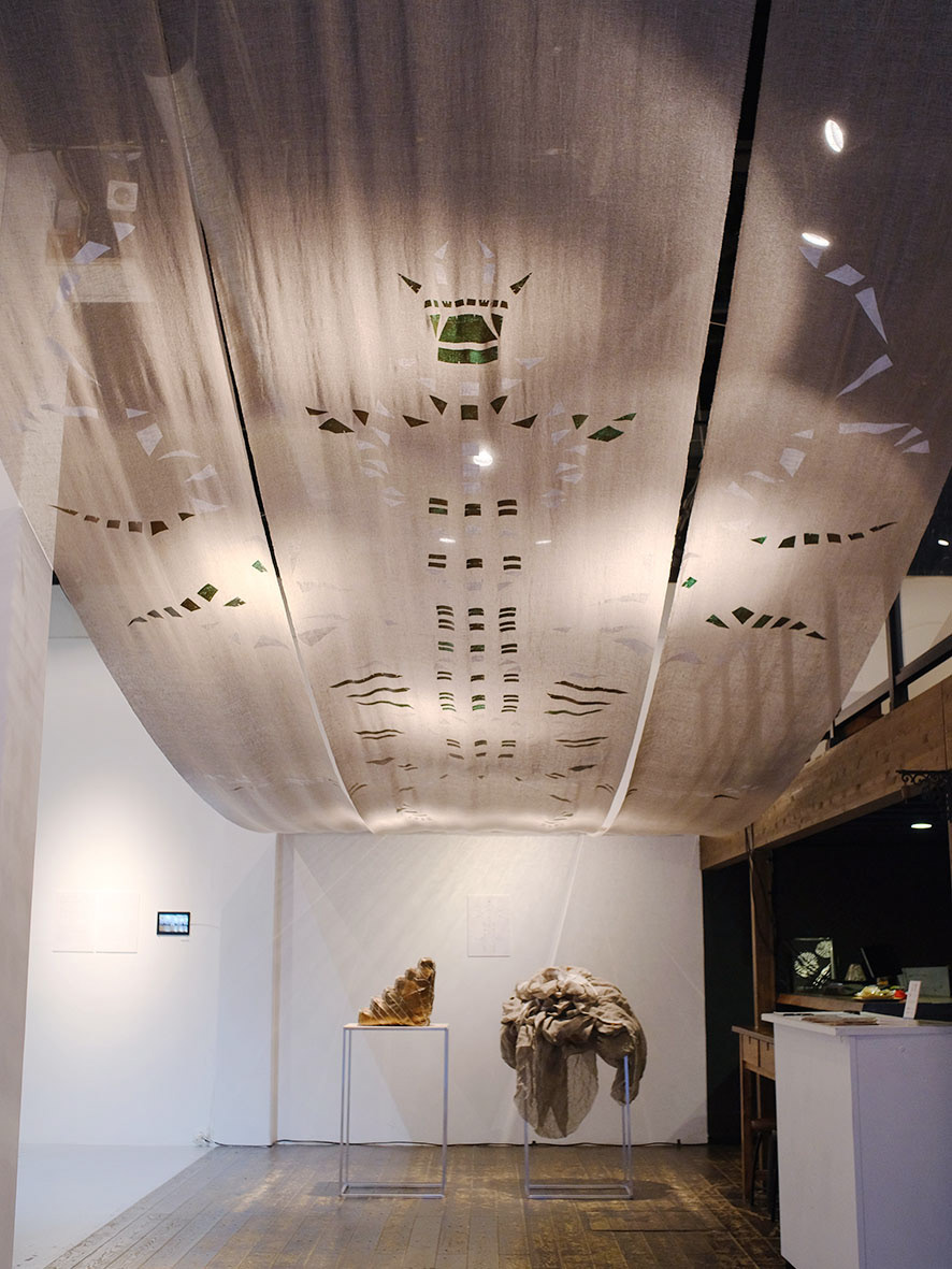 materials: linen, polyester, cotton, pigment, a copper film, basting thread, water-soluble thread